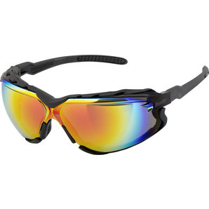 The smoked lenses with a padded plastic frame and very light and comfortable to wear. To protect your eyes, they have a 100% UV filter and shatterproof lenses (laboratory test in which stone chip impact at over 200 km/h is simulated). The sporty ergonomics mean that this model will suit the silhouette of your face perfectly.
