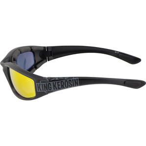 The smoked lenses with a padded plastic frame and very light and comfortable to wear. To protect your eyes, these King Kerosin biker sunglasses have a 100% UV filter and shatterproof lenses (laboratory test in which stone chip impact at over 200 km/h is simulated). The sporty ergonomics mean that this model will suit the silhouette of your face perfectly.