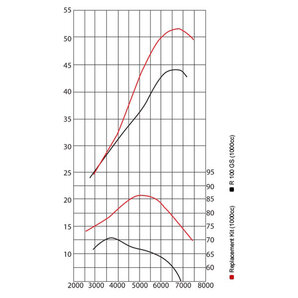 Replacement Kit has been fitted. A good 67 hp is available after the modification. Once in use, the kit shows an improvement in quiet-running and - because of the lighter pistons - a not to be despised measure of spontaneity. Gaskets are not included please order at the same time a gasket set Art. No. 60190100 to complete the fitting of the Replacement Kit