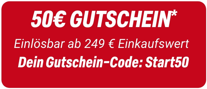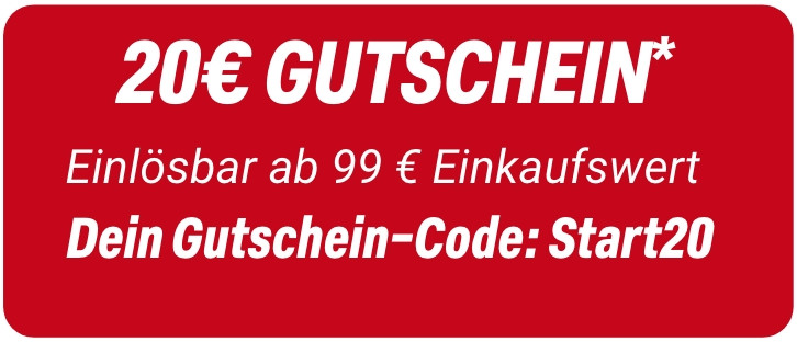 * Einfach die Gutschein-Code Start20 oder Start50 im Bestellprozess eingeben. 20 € Gutschein einmalig einlösbar ab 99 € Einkaufswert nach Retouren. 50 € Gutschein einmalig einlösbar ab 249 € Einkaufswert nach Retouren. Diese Gutscheine werden bis zum 07.03.2026 in deiner Filiale und bis 08.03.2026 im Onlineshop eingelöst. Vom Rabatt ausgenommen sind Druckerzeugnisse und Geschenkgutscheine. Nicht kombinierbar mit Gutscheinen aus anderen Aktionen sowie der Louis Händler- oder Fahrlehrerkarte. Nur jeweils ein Gutschein pro Person und Einkauf.